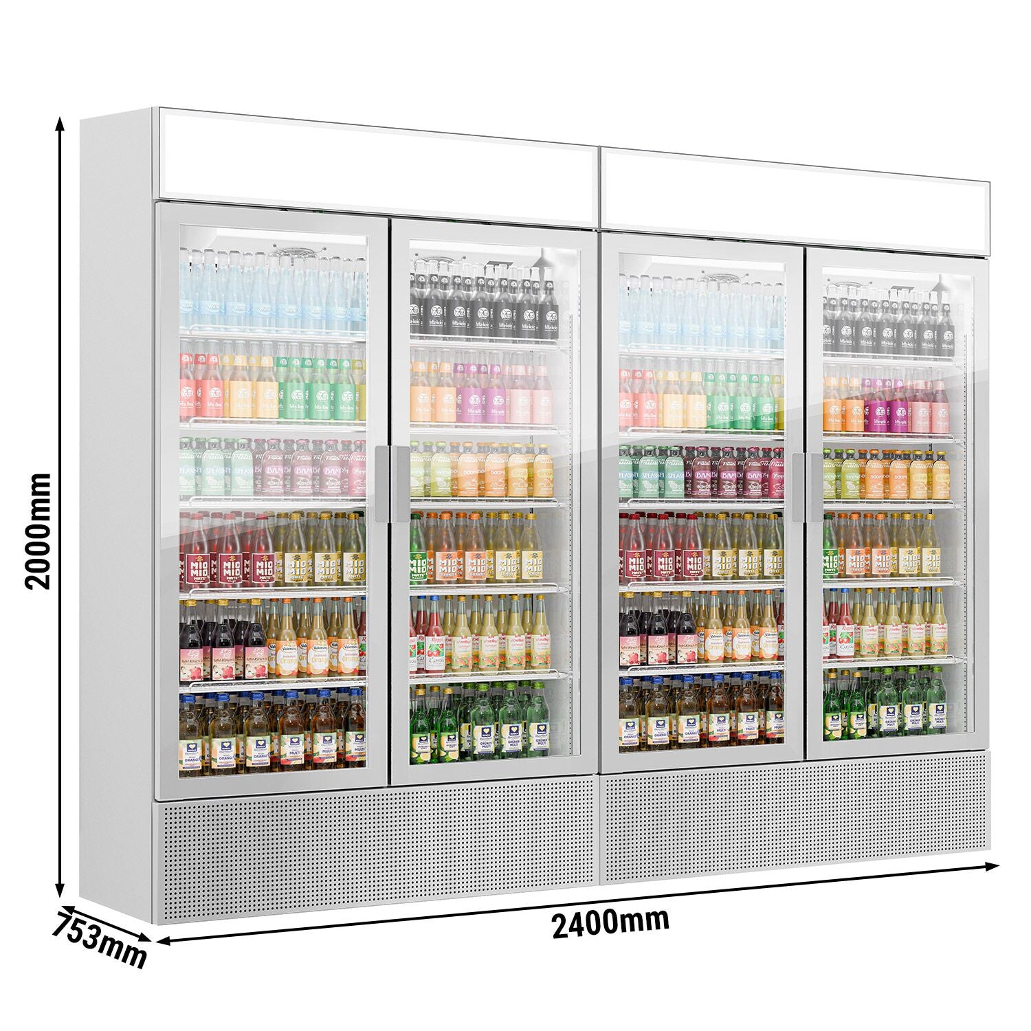 (2 stk.) Flaskekøleskab - 2400 Liter - rammeløst design - med 4 glasdøre & reklamedisplay