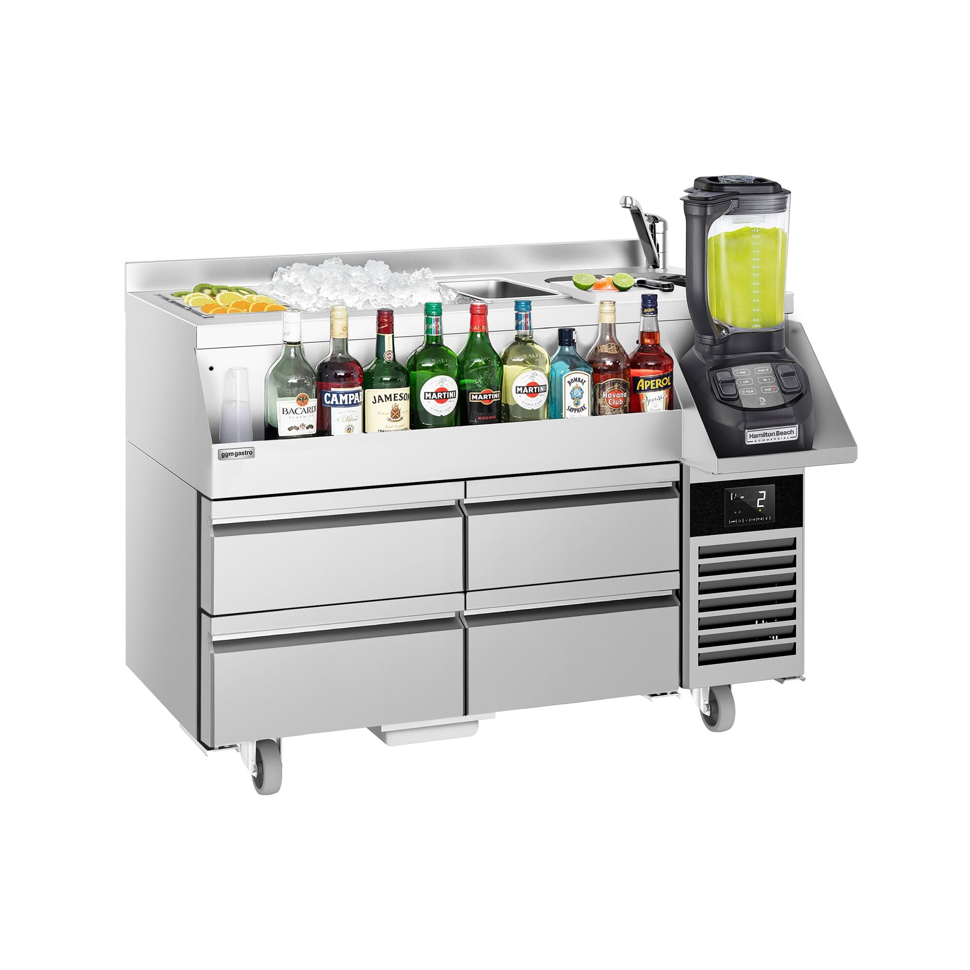 Backbar - 1,4 x 0,6 m - 150 Liter - med 4 Skuffer 1/4 og Hylder