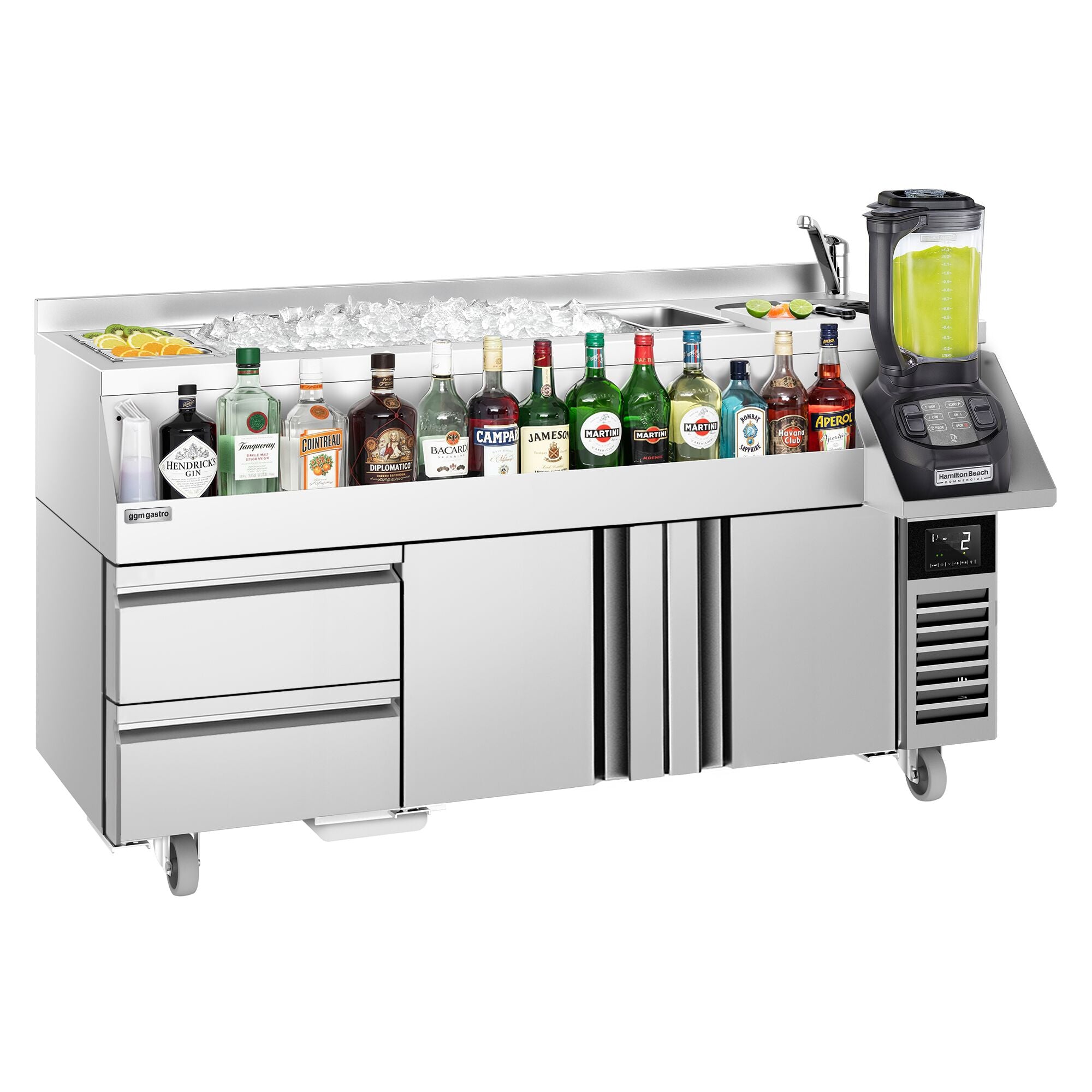 Backbar - 1,6 x 0,6 m - 235 Liter - med 2 Døre, 1 Skuffe 1/2 og Hylder