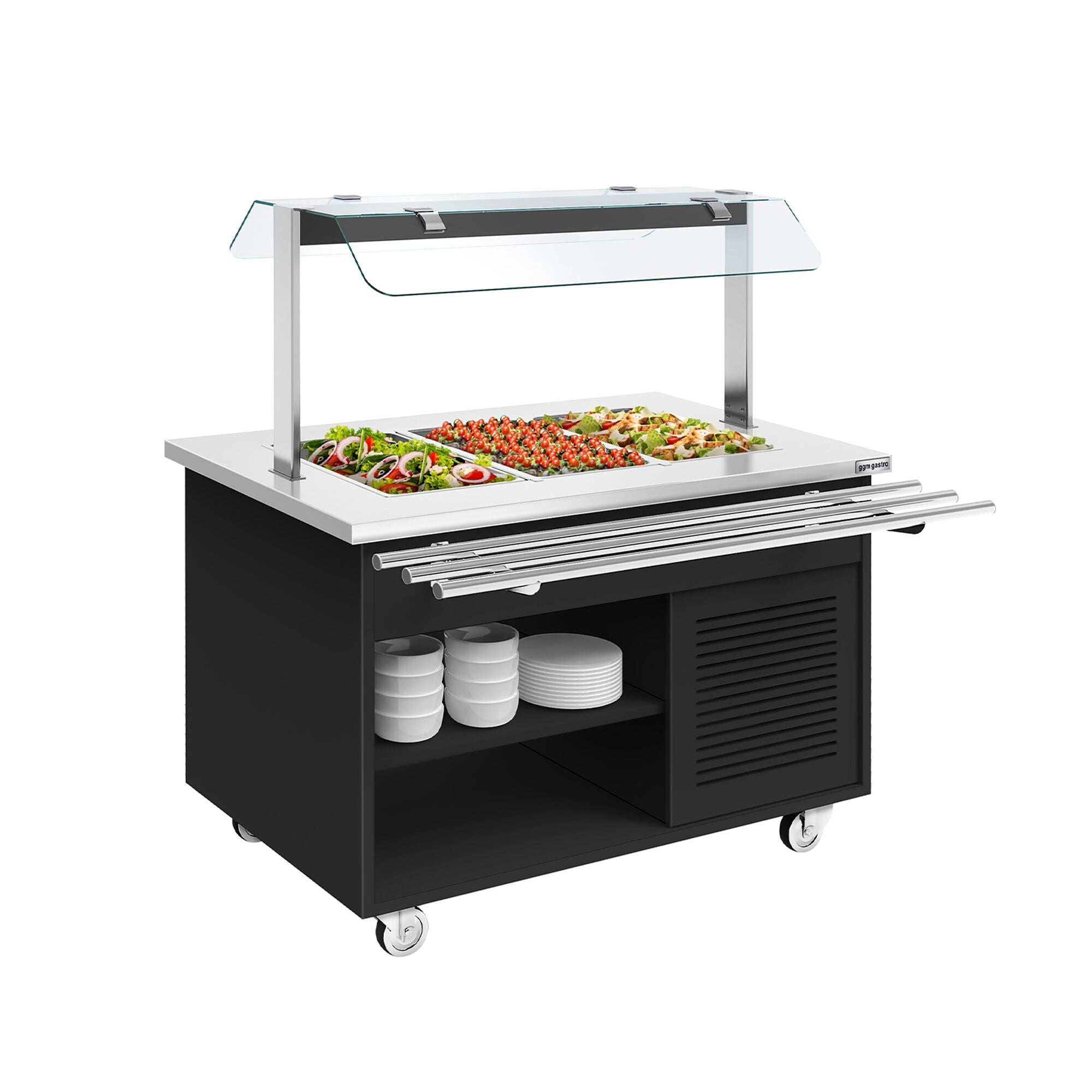 Kold buffetvogn DANZIG - 1300mm - til 3x GN 1/1 - med bakkeskinne - sort