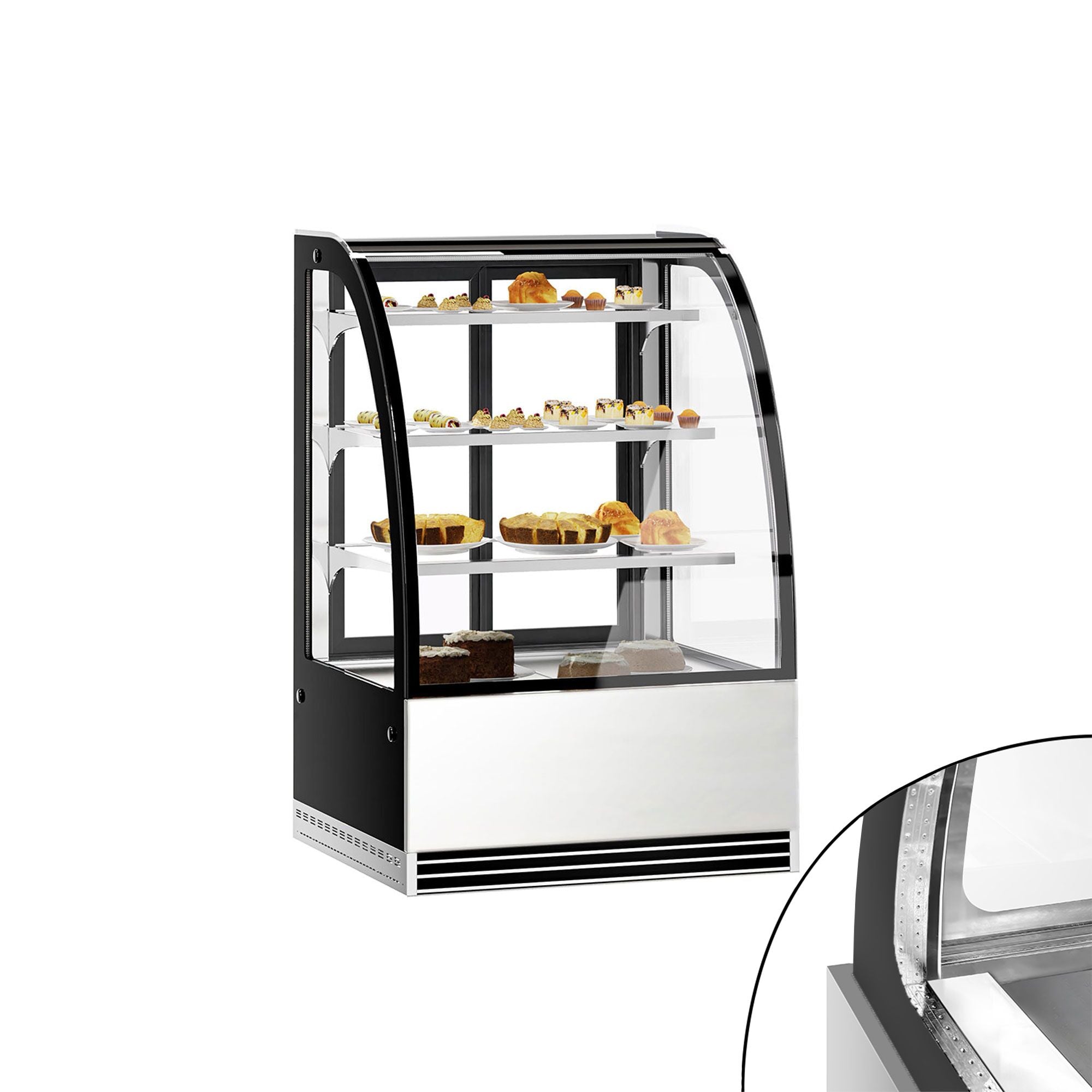 Kagedisk 0,9 m - 3 hylder - frontglas rundt (LED)