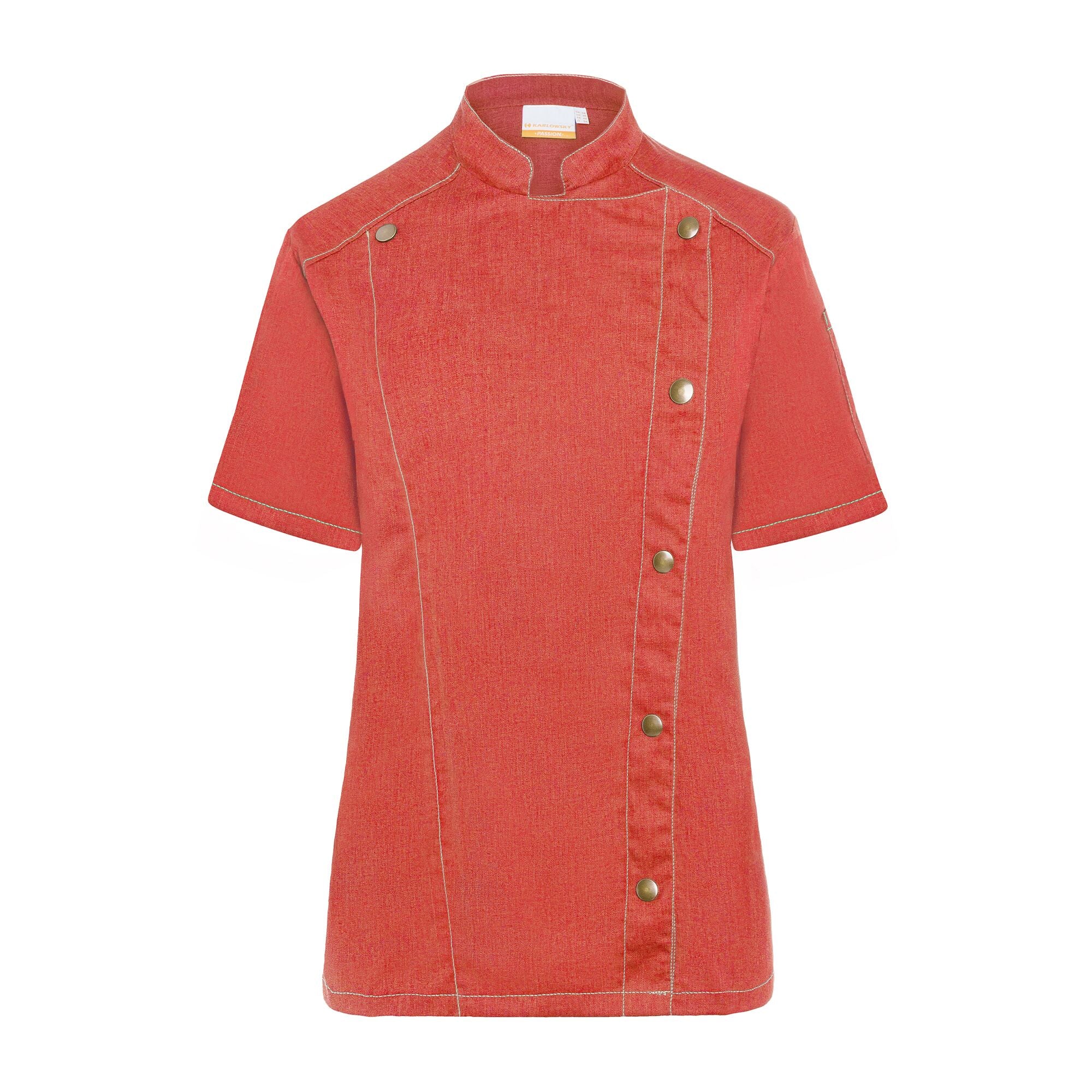 KARLOWSKY | Kortærmet madlavningsjakke til damer i jeansstil - Vintage rød - Størrelse: 44