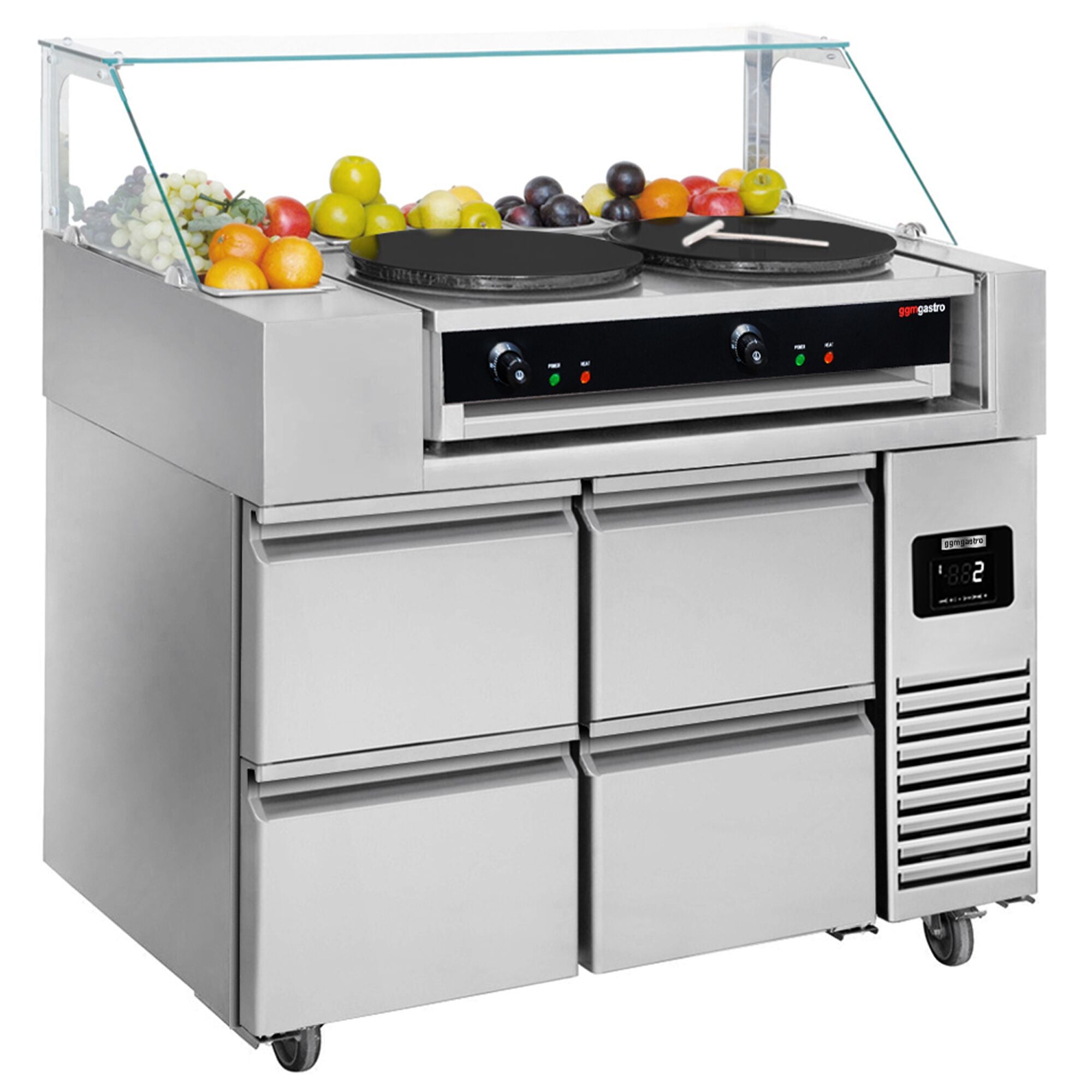 Kølebord - 1,21 x 0,7 m - 4 skuffer 1/2 inkl. Crepeplade/pandekageplade med 2 plader