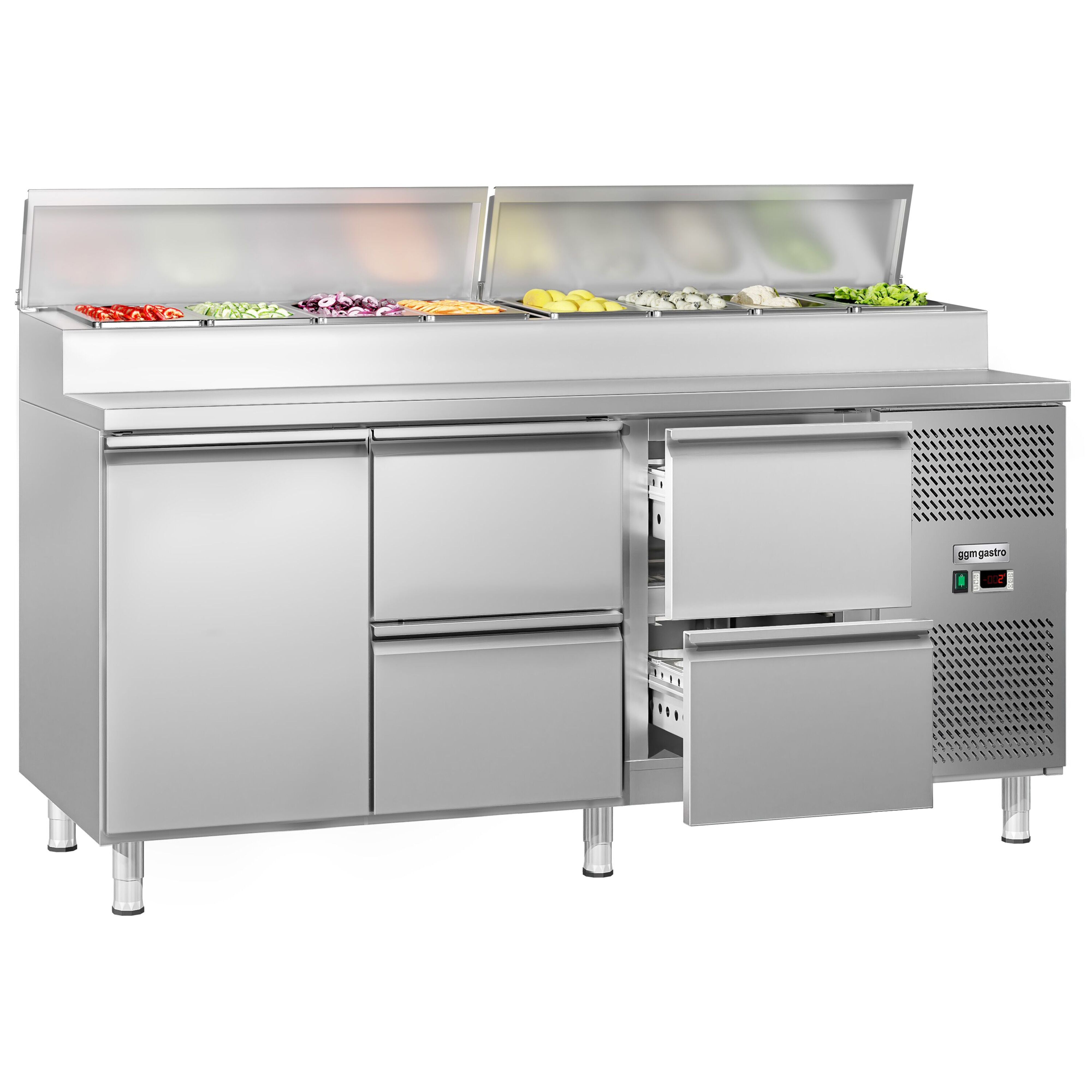Koldjomfru / Sandwichbord ECO - 1,8 x 0,7 m - med 1 dør & 4 skuffer - till 8x GN 1/3