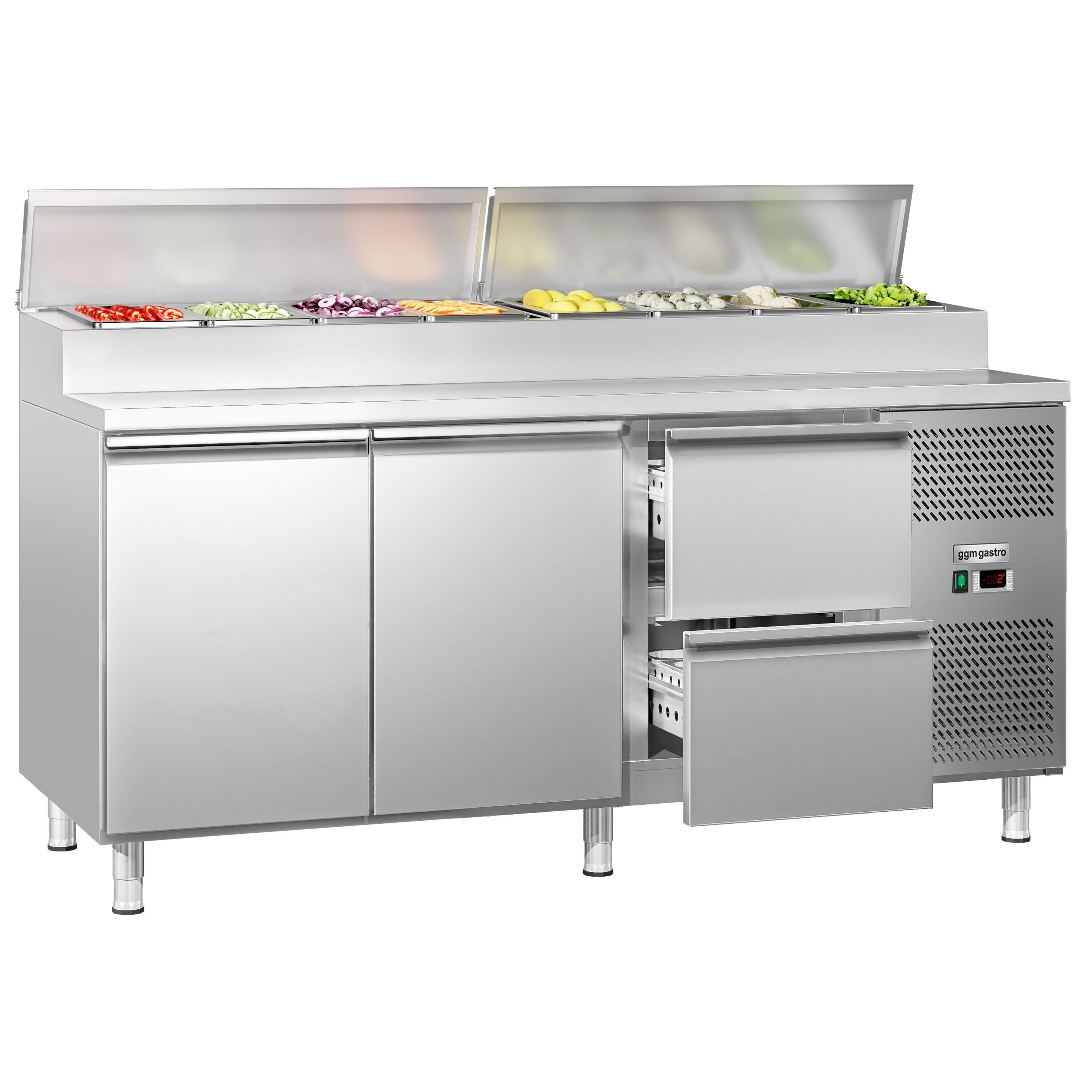 Koldjomfru / Sandwichbord ECO - 1,8 x 0,7 m - med 2 døre & 2 skuffer - till 8x GN 1/3