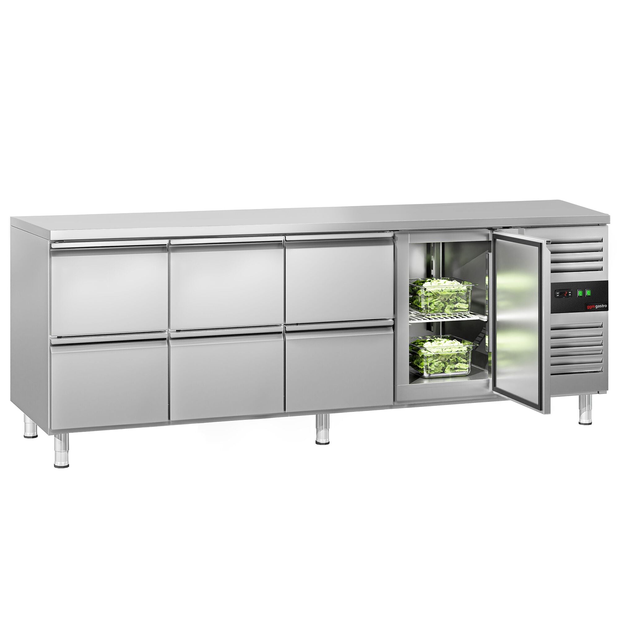 Kølebord ECO - 2,2 x 0,7 m - med 1 Døre og 6 Skuffer 1/2