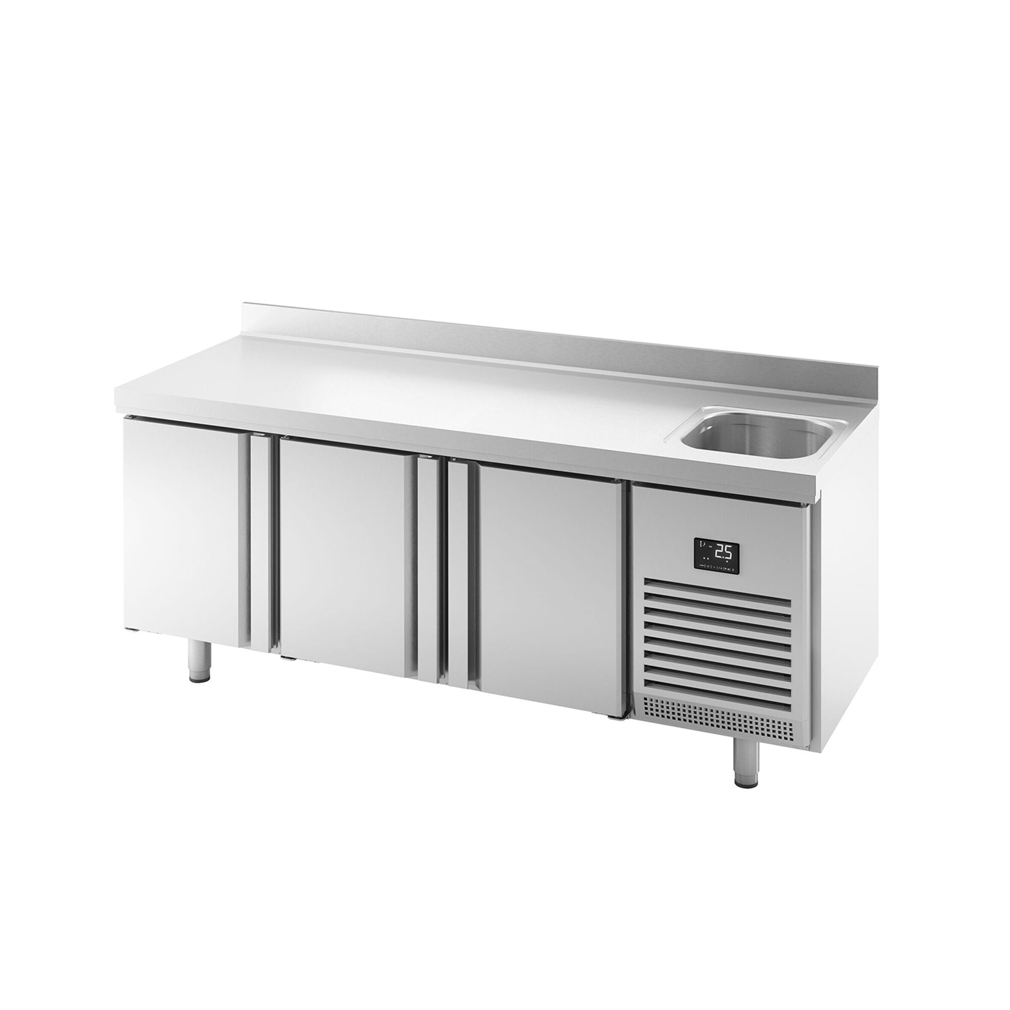 Kølebord Premium PLUS - med 1 Vask, 3 Døreog Bagkant