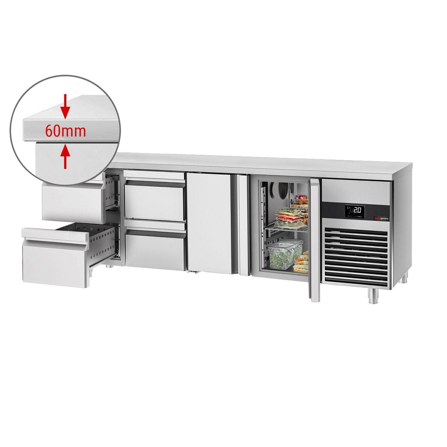 Kølebord PREMIUM - 2,3 x 0,7 m - med 2 Døre og 4 Skuffer 1/2