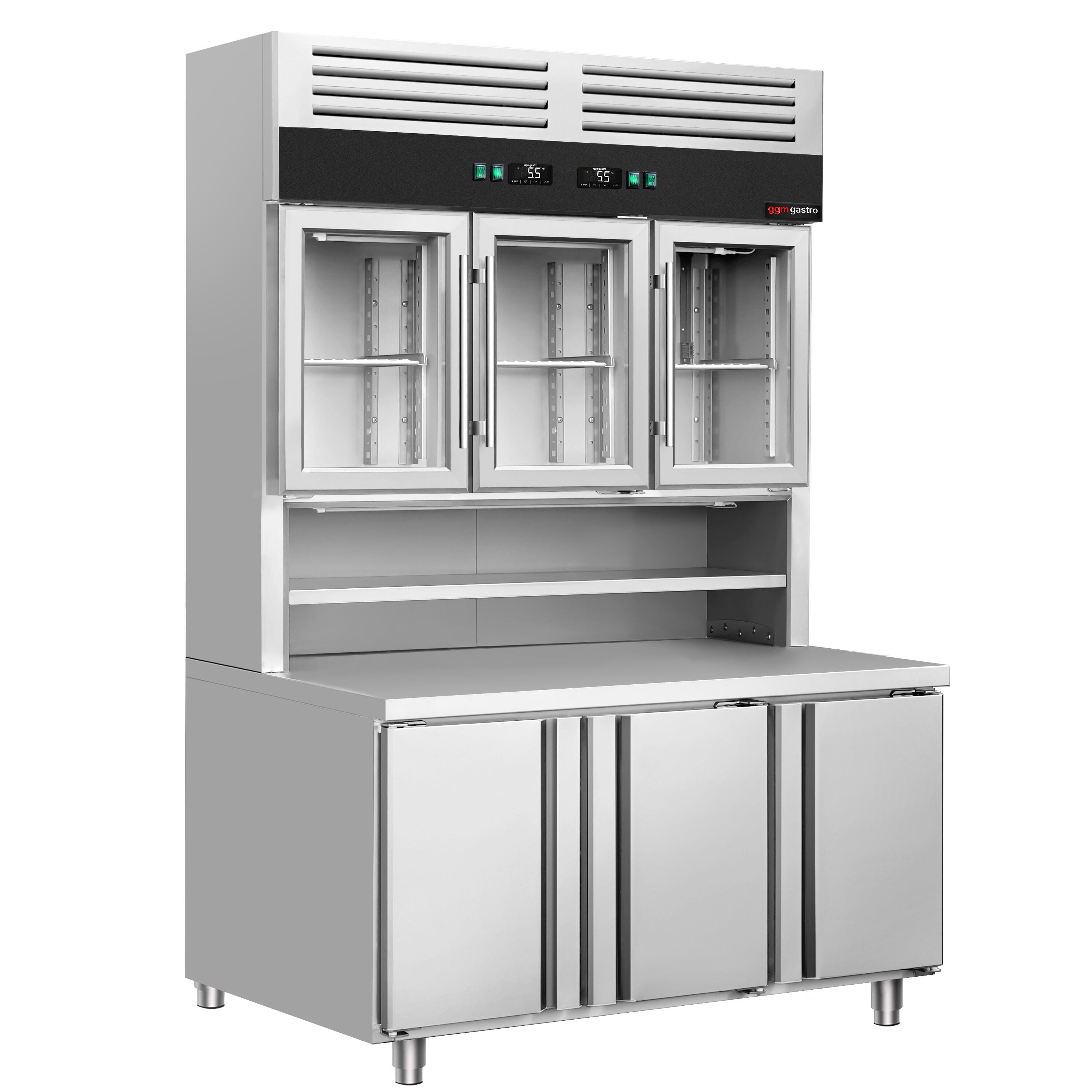 Kølekombination med top- og bundkøling - 1350 mm - 3 glasdøre øverst, 3 døre nederst og bordplade