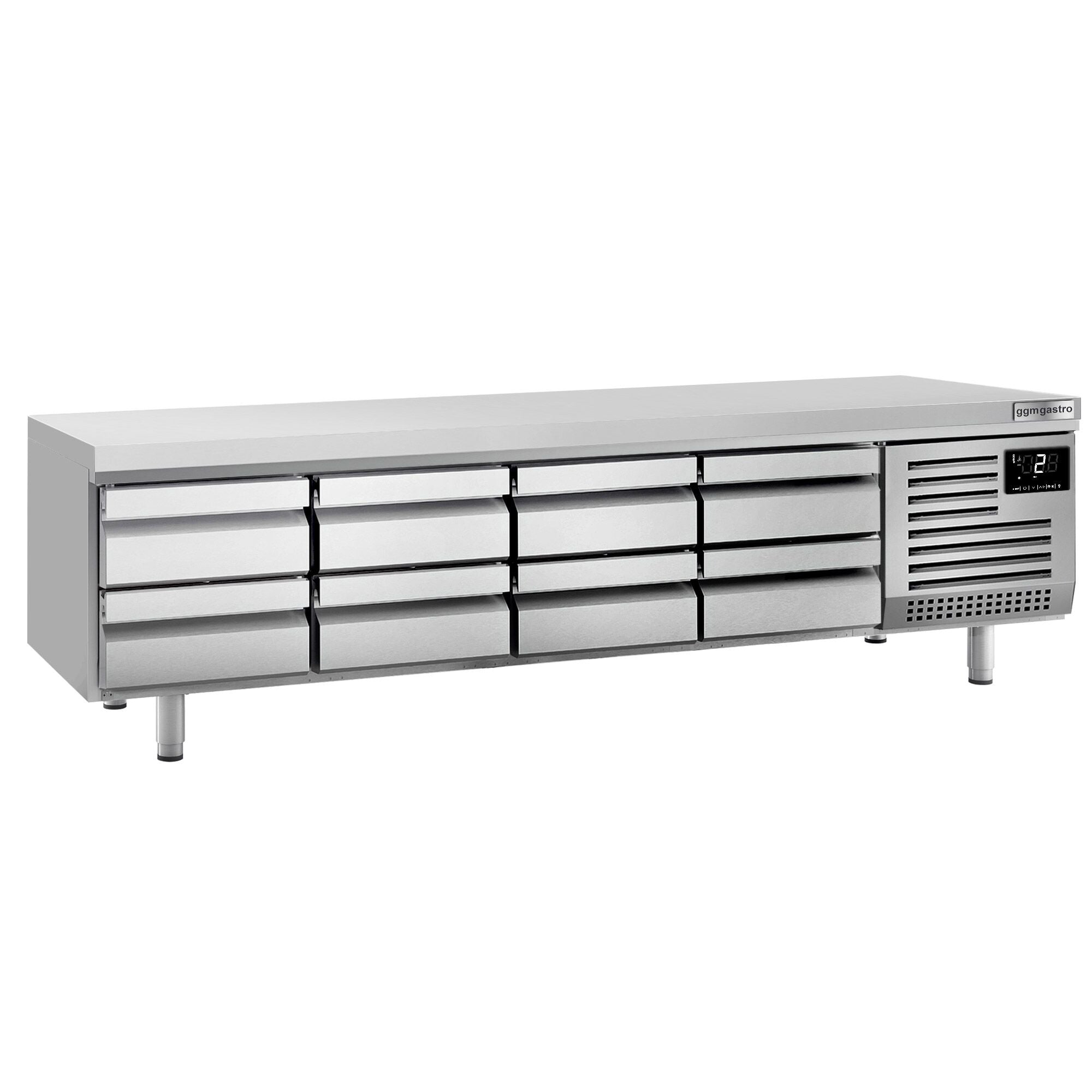 Lavt kølebord PREMIUM PLUS - 2400mm - 435 Liter - med 8 skuffer 1/3