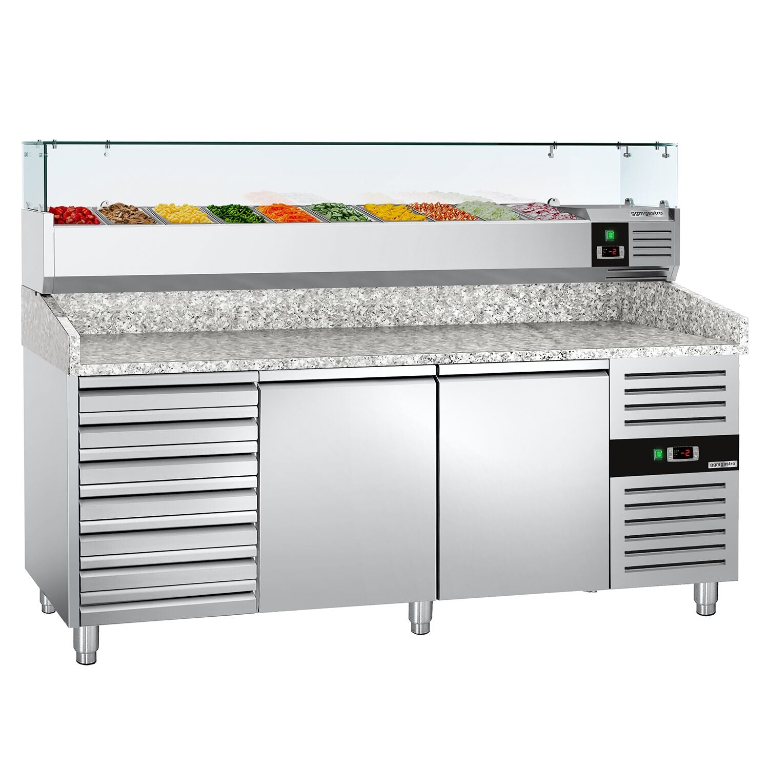 Pizzabord ECO 2,0 x 0,8 m - med 2 Døre og 7 Neutrale Skuffer - inkl. Køleopsats - 9x GN 1/3