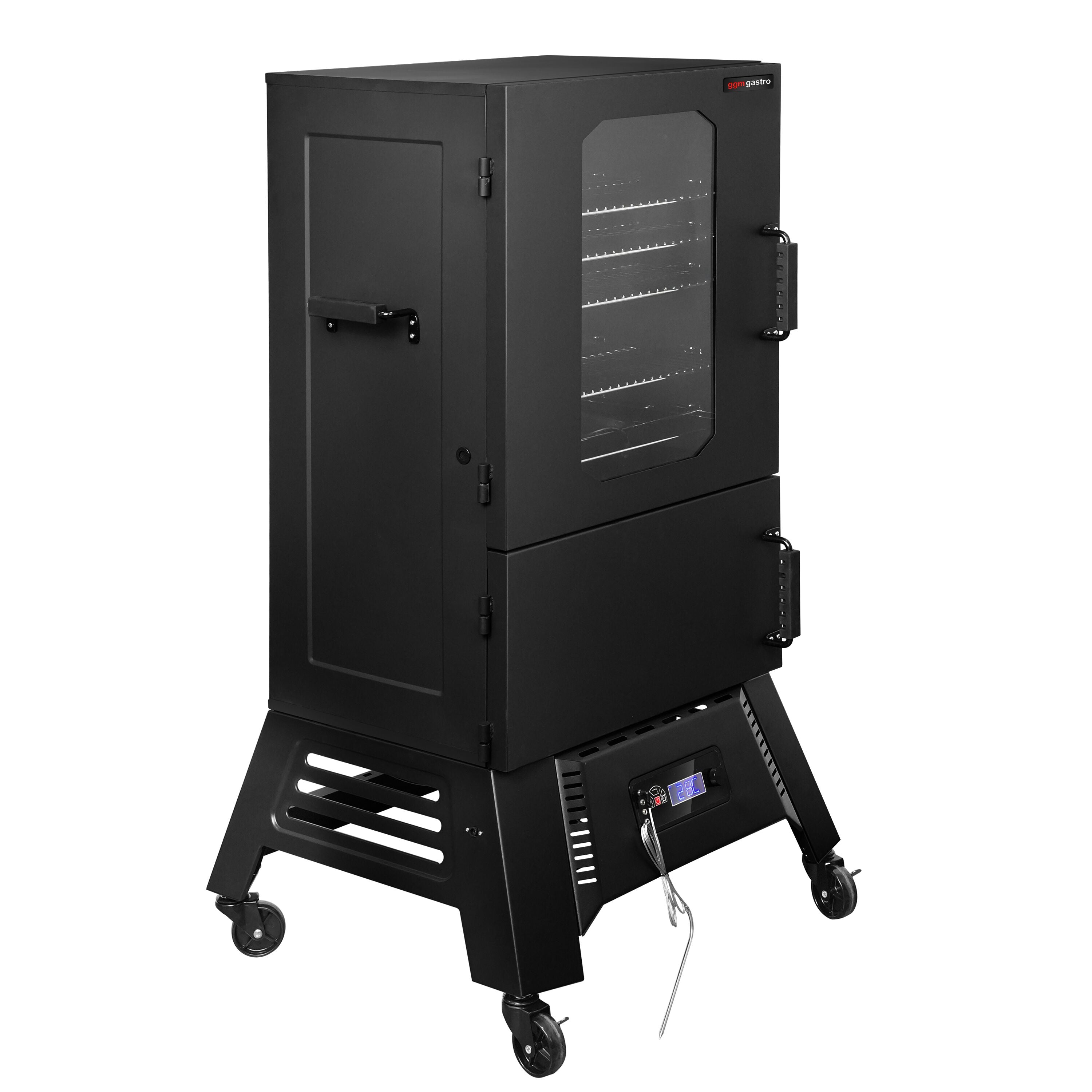 Røgeovn - digital - med 4 hylder - på hjul - sort