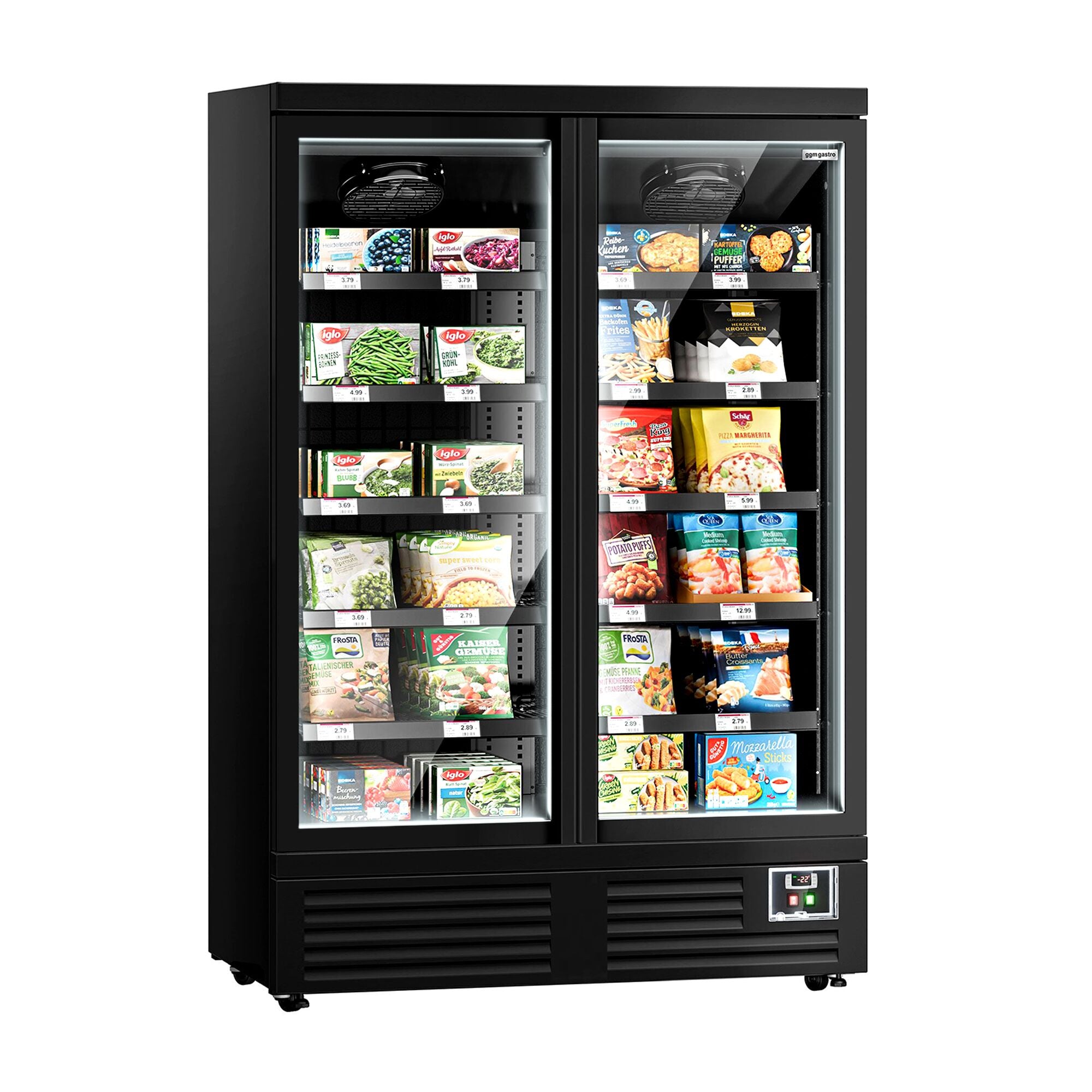 Display fryser - 1310 mm - 991 Liter - med LED-belysning, isolerede glasdøre og 5 hylder