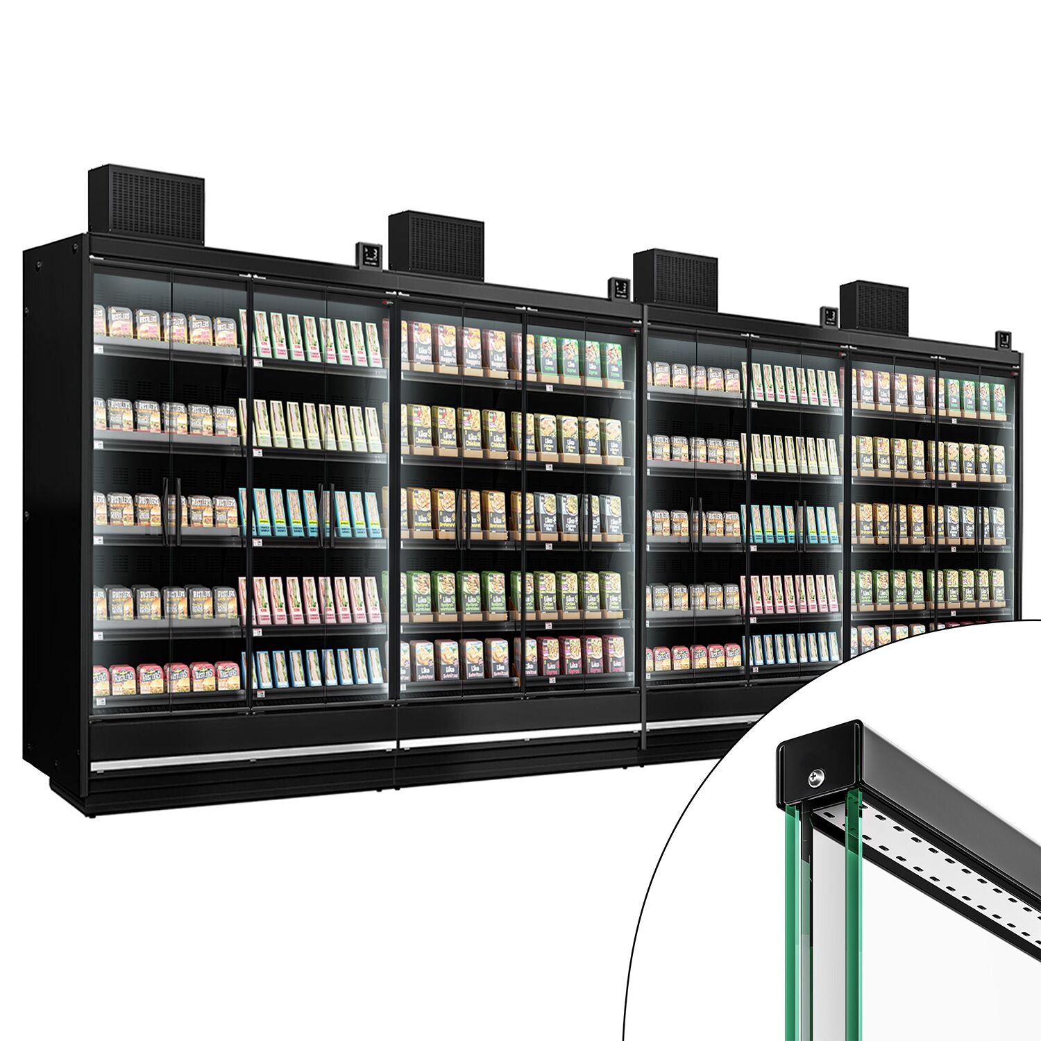 Vægmonteret kølehylde - 1875 mm - med LED-belysning, isolerede glasdøre og 5 hylder