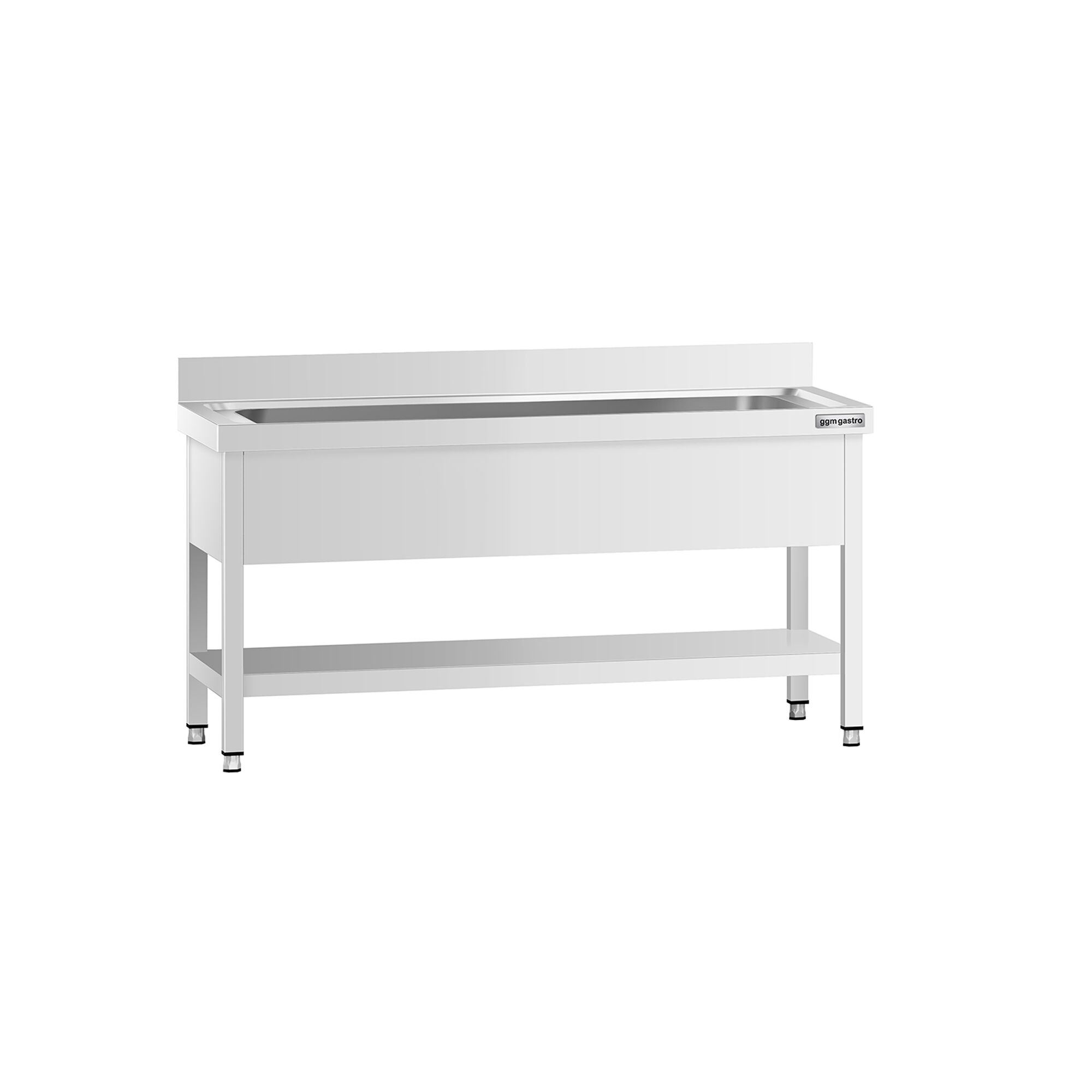 Stålbord med vasker til gryder med underhylde PREMIUM - 1,4 m - 1 vask L 120 x W 50 x D 35 cm